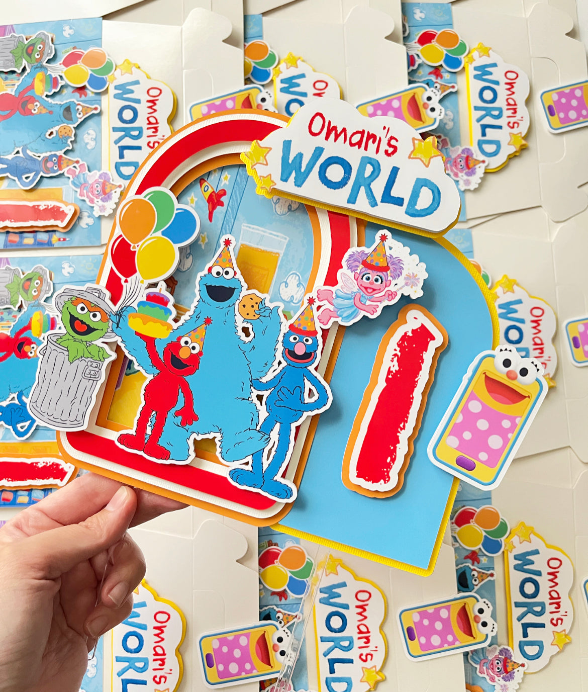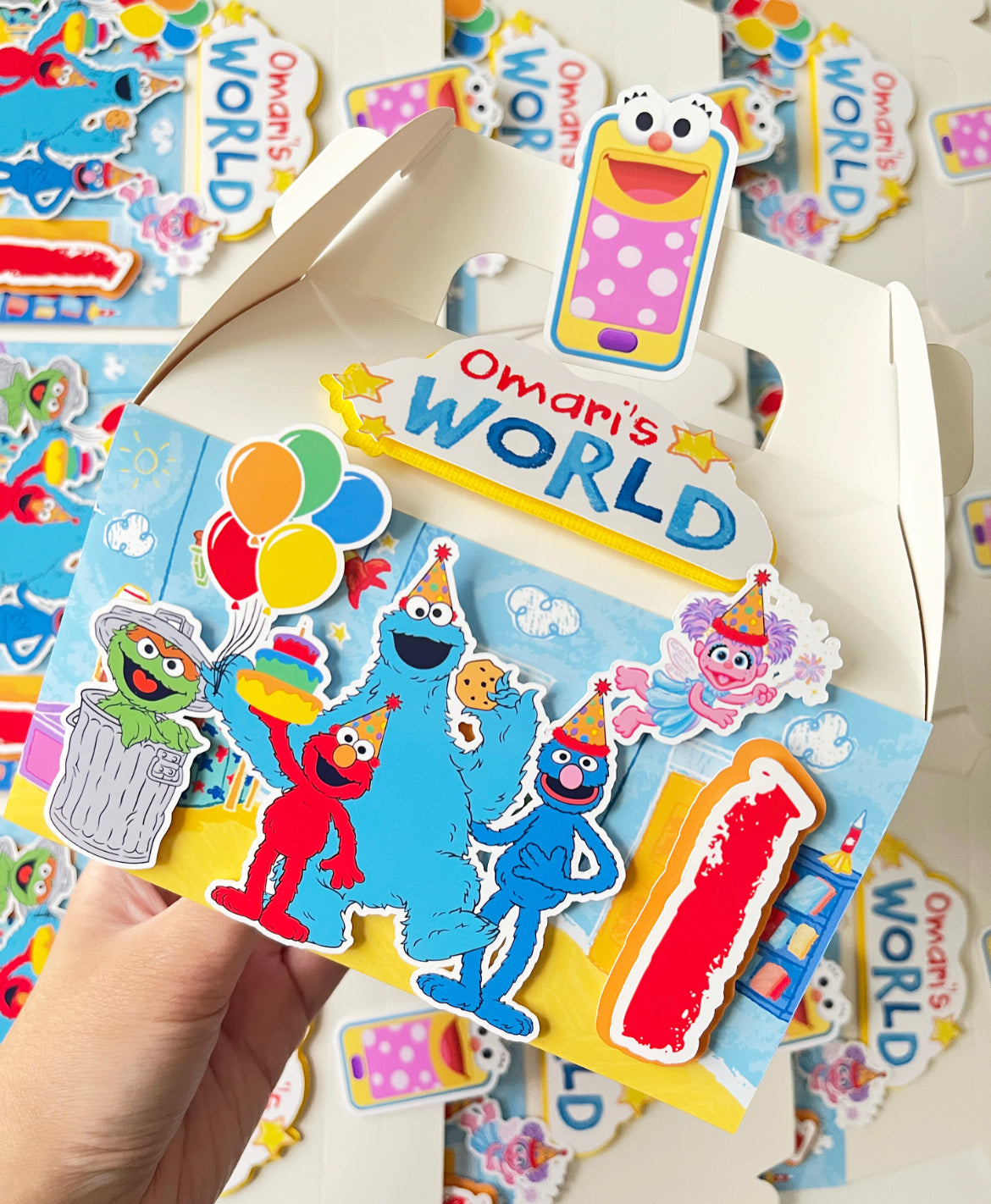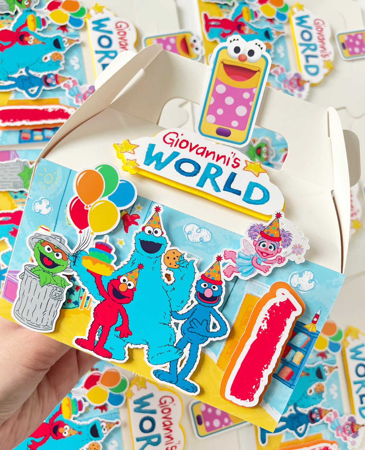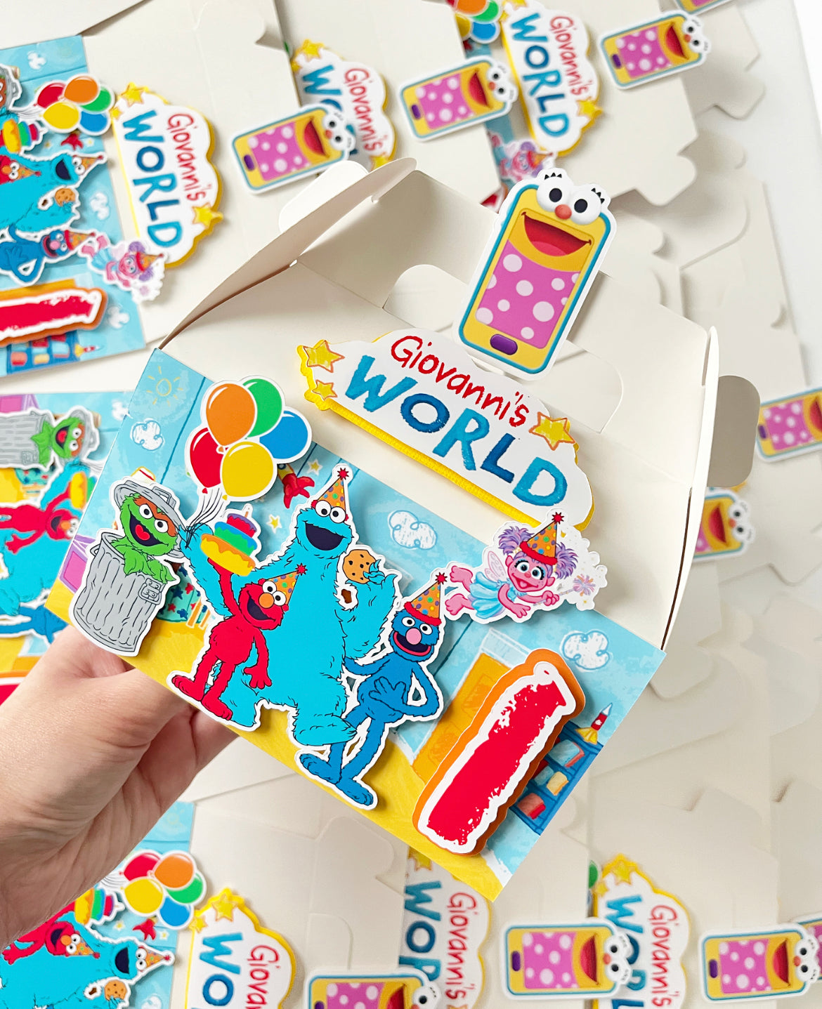 3D Gable Boxes - The front of the box is decorated with cardstock paper, printed images and popped with foam to give a 3D layered look. Boxes are personalized with birthday child’s name and age (If you’d like multiple names there will be an additional fee).
