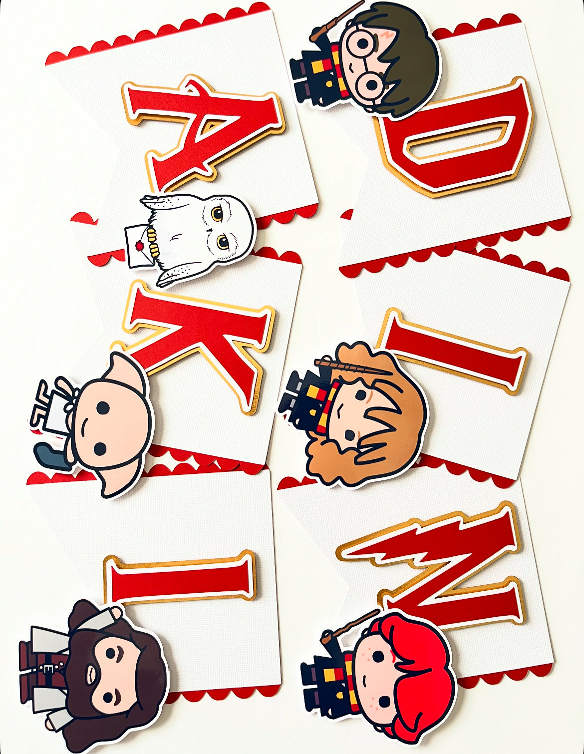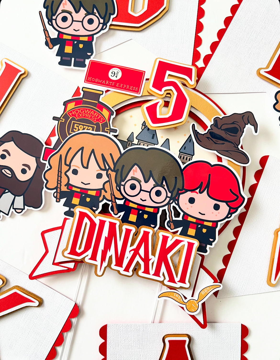 Party Package includes happy birthday banner with name banner (up to 9 letters), cake topper, 12 cupcake toppers and 12 gable boxes.