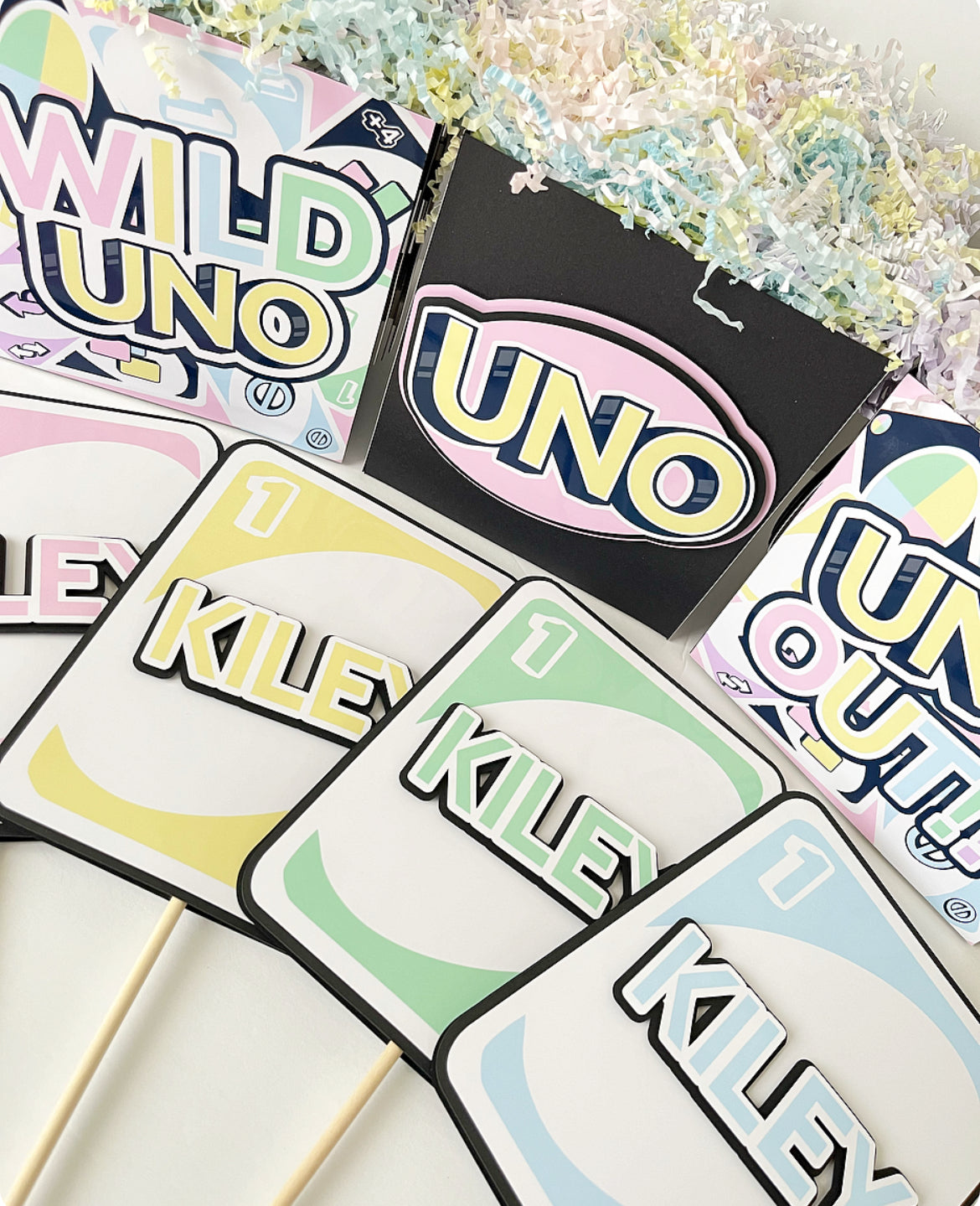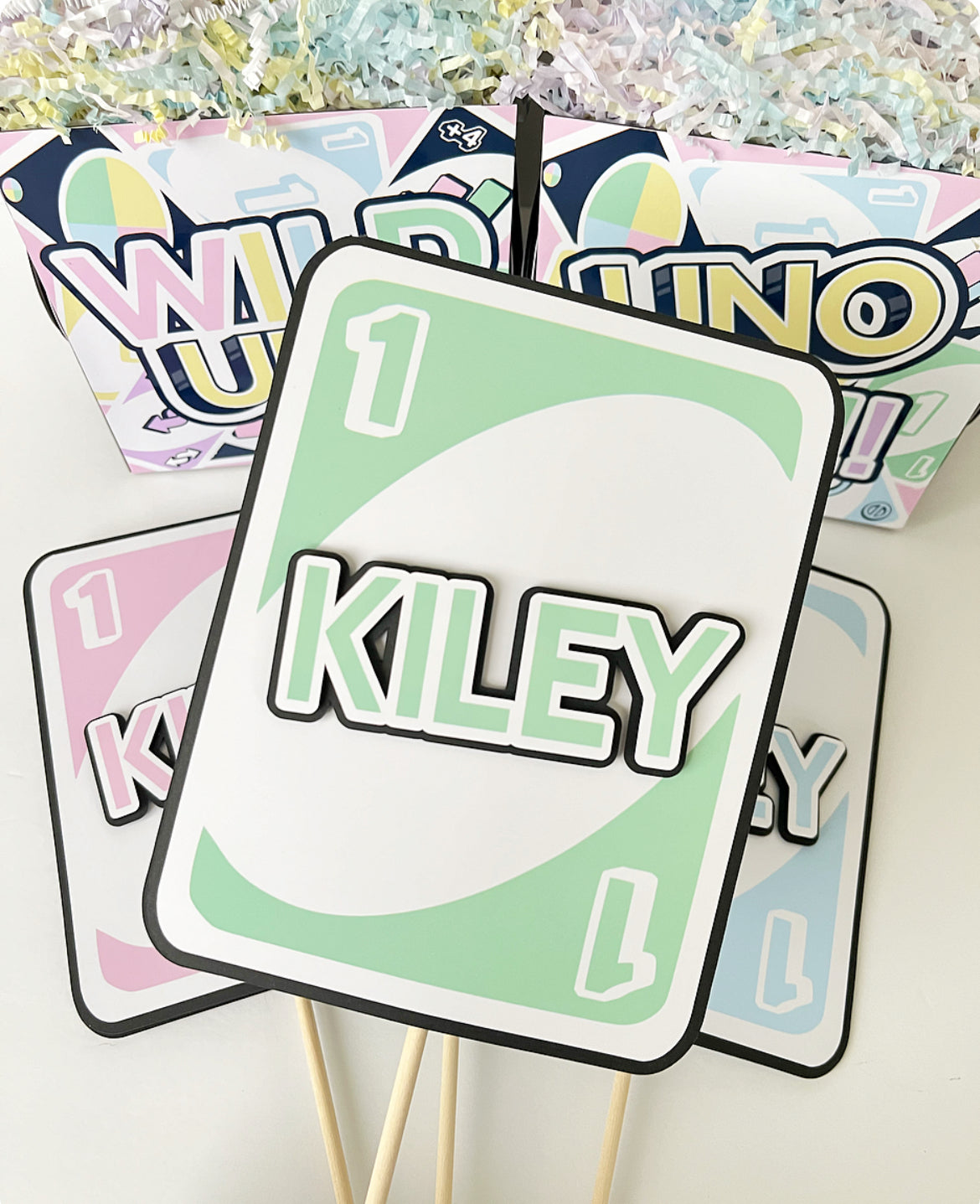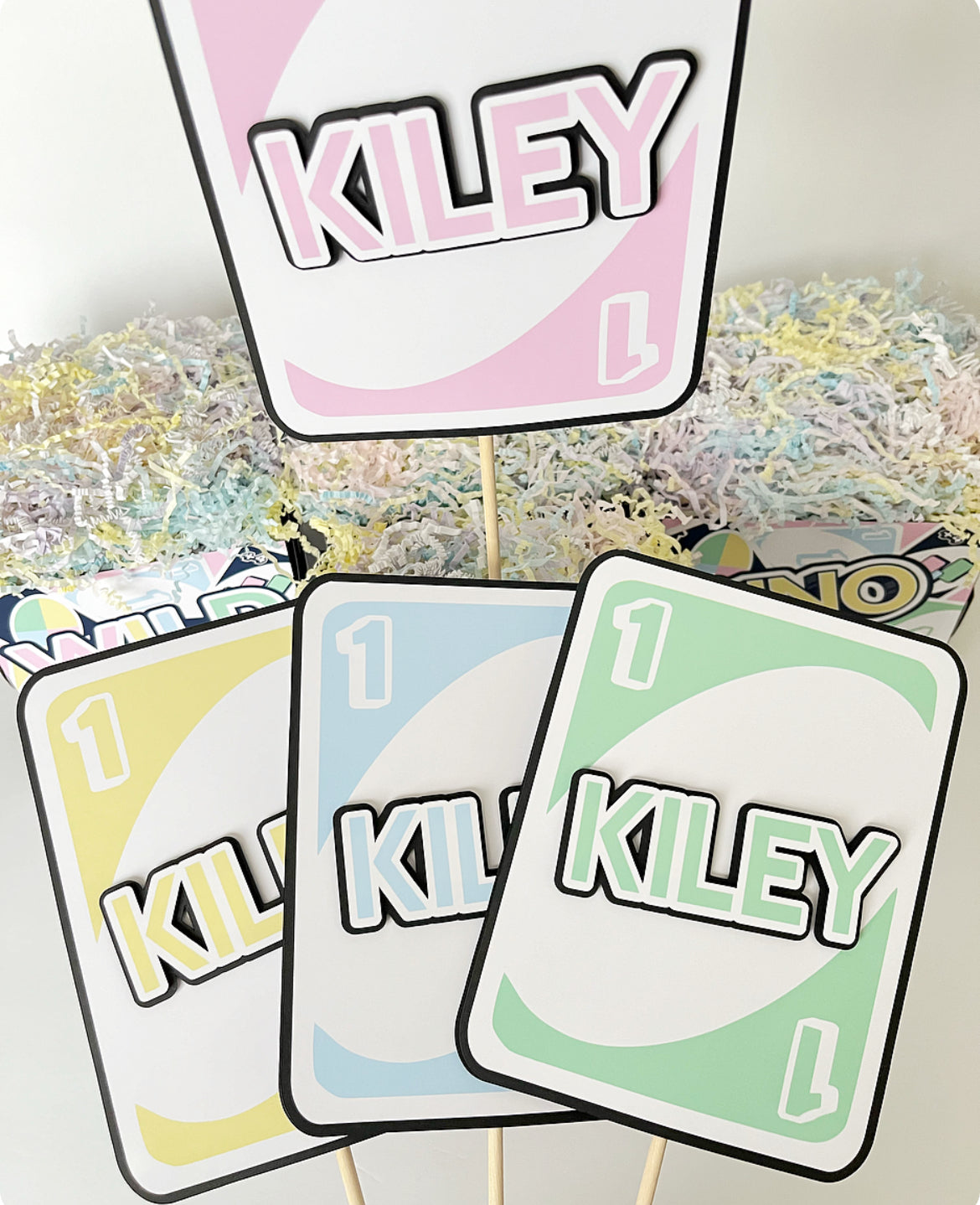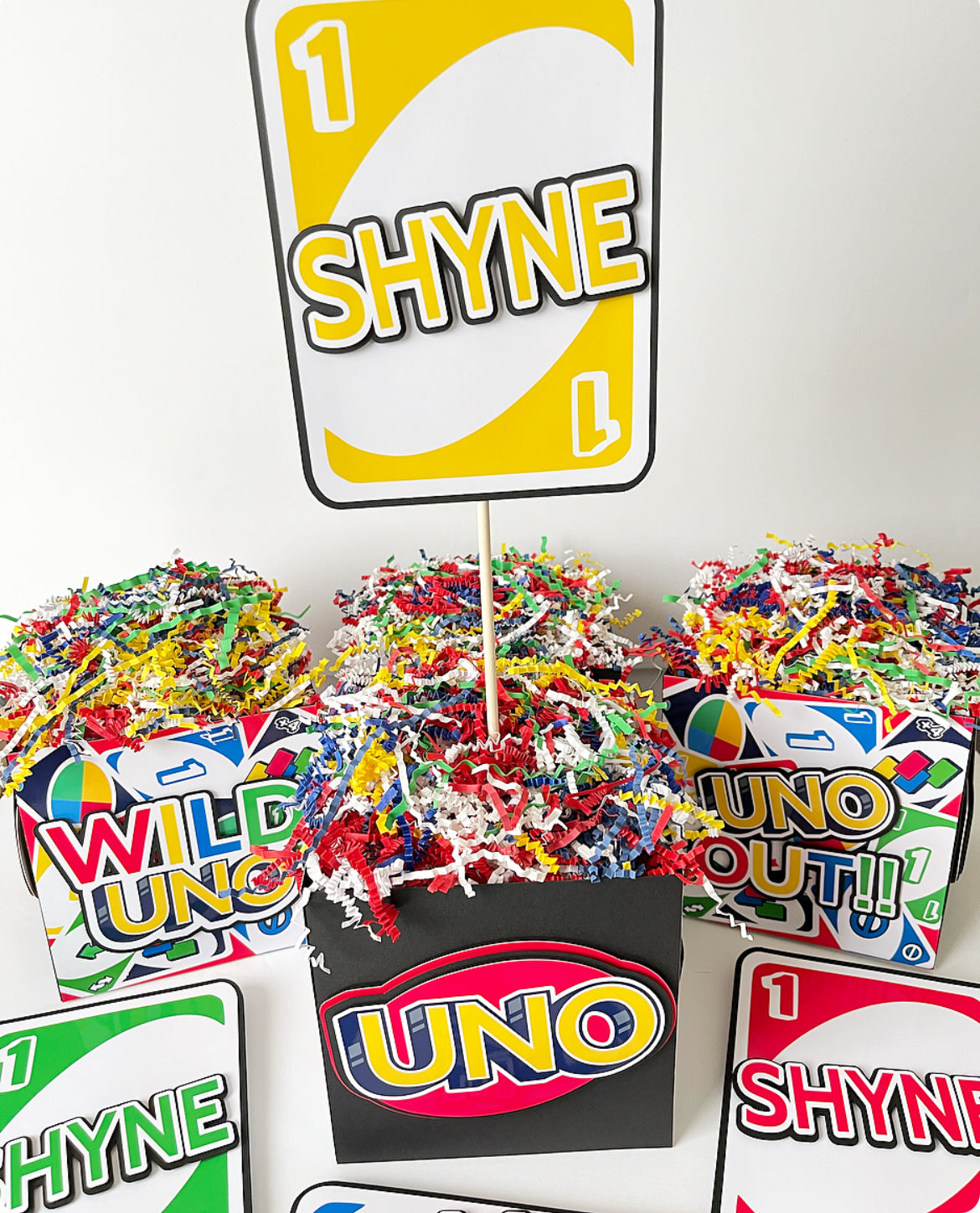 ***Centerpieces will be made in traditional UNO colors unless pastels are requested in the special instructions box at checkout. Also, the sides of the box where you see uno out and wild uno will be a flat printed image as seen on the pastel centerpieces. Only the front and back of the box will be 3D.***