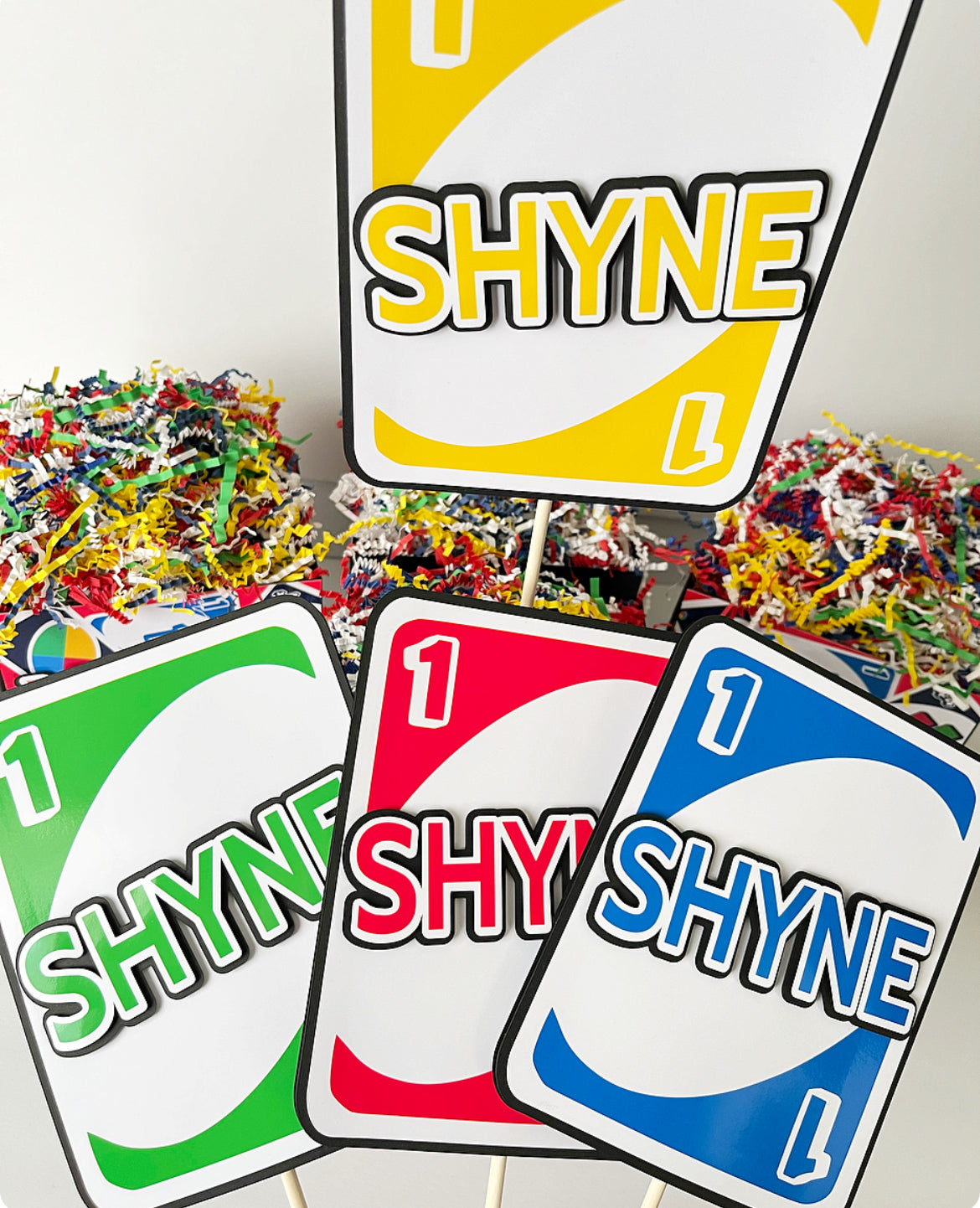***Centerpiece sticks will be made with four large colored cards (red, yellow, blue, and green) and name. If you’d like the UNO or wild card in replace of the colored cards please leave that request in the special instructions at checkout.***